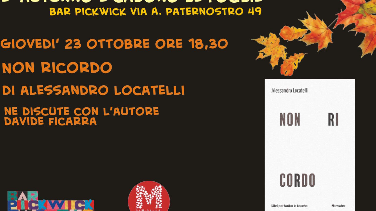 Secondo incontro della rassegna letteraria del Bar Pickwick “E’ autunno e cadono le foglie”. Questa volta è...