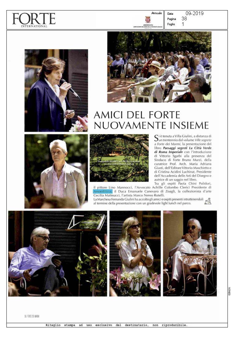 La Città Verde di Roma Imperiale” con l’introduzione di Vittorio Sgarbi alla presenza del Sindaco di Forte Bruno Murzi, della curatrice Prof. Arch. Maria Adriana Giusti, dell’Editore Vittorio Maschietto e di Cristina Acidini Luchinat, Presidente dell’Accademia delle Arti del Disegno e autrice di un saggio nel libro.