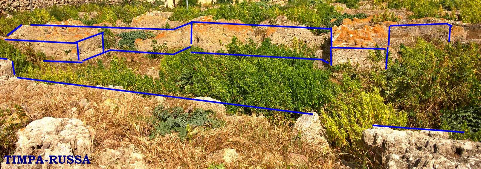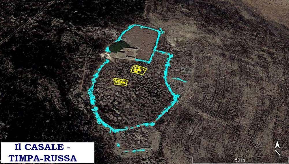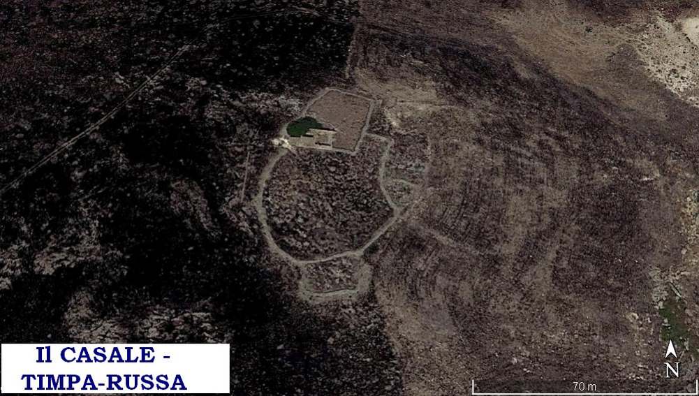 Si tratta, assai probabilmente, delle basi di un vasto comprensorio al cui fianco poi, in epoca successiva, è stato edificato l’attuale baglio denominato “ Timpa-Russa”.
