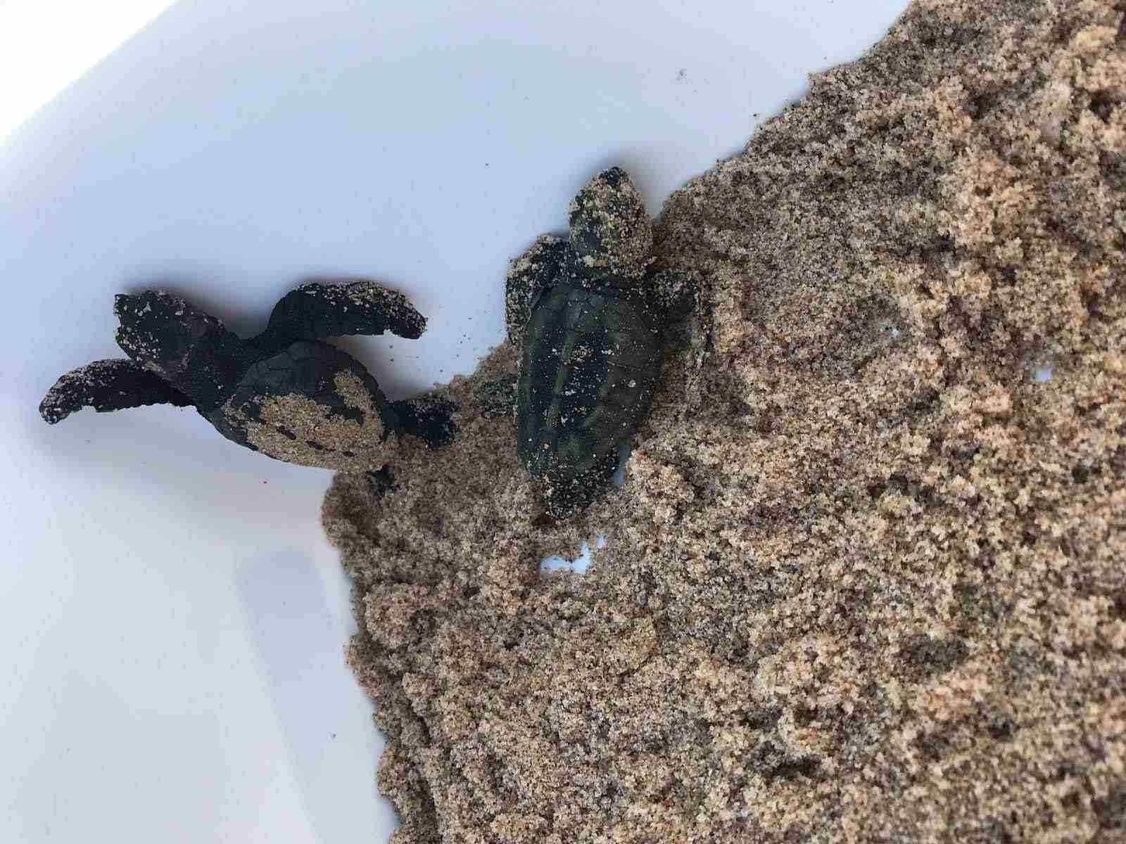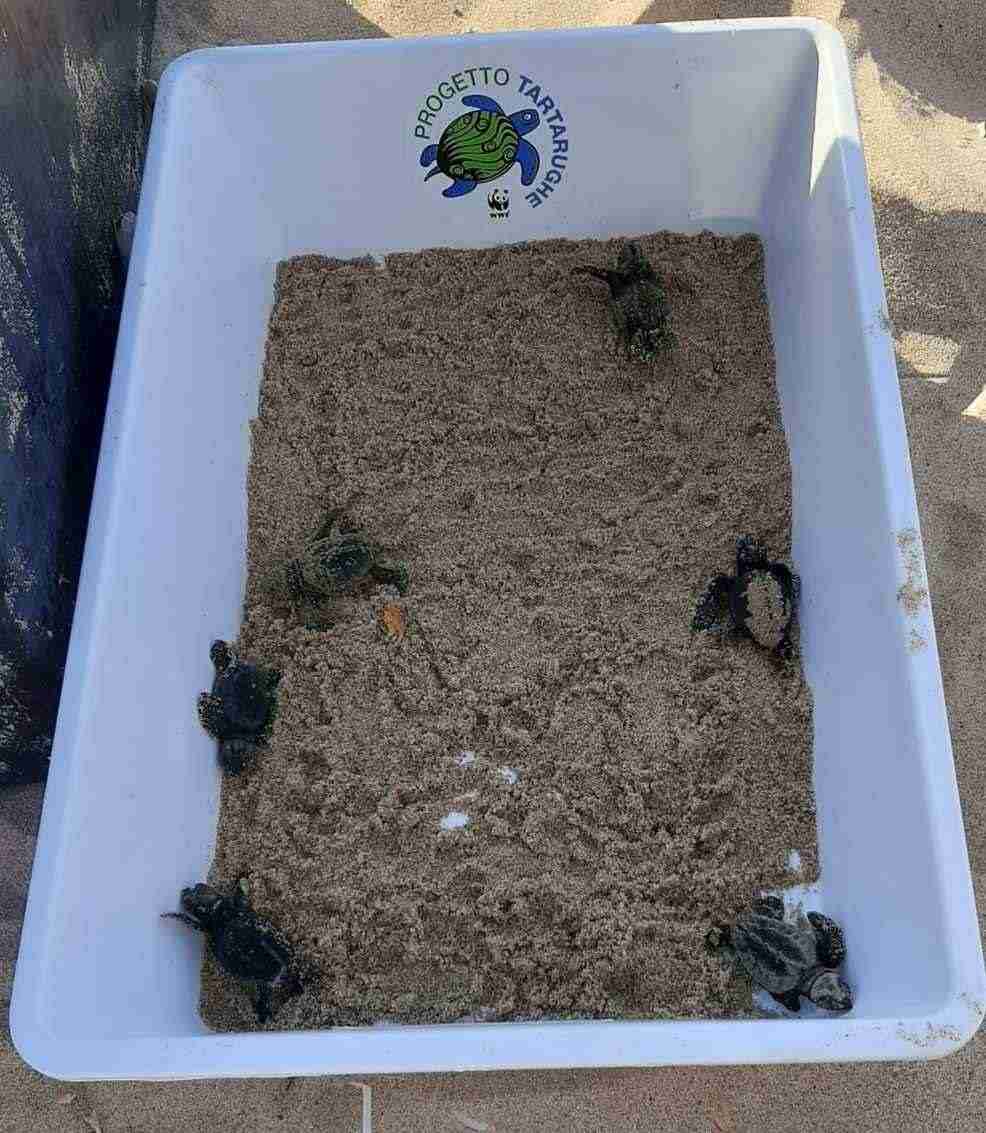 Delle 79 uova deposte da mamma tartaruga a fine giugno, se ne sono schiuse ben 59 ed altrettante neonate hanno preso il mare, sperando che le femmine tornino fra 20 anni a deporre le loro uova, come ha già fatto la loro mamma.