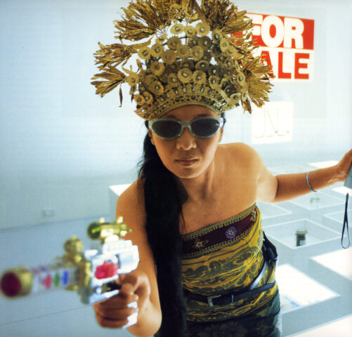 La carriera internazionale di Arahmaiani (Bandung 1961, vive a Yogyakarta) ha avuto pionieristici riconoscimenti già negli anni ‘90: invitata da Apinan Poshyananda alla mostra seminale Tradition/Tensions, presso l’Asia Society di New York (1996), tra i 100 artisti internazionali presenti nella celebre “exhibition-in-a-book” Fresh Cream (2000), fino alla 50a Biennale di Venezia dove ha rappresentato il Padiglione dell’Indonesia (2003). Nel 2007 partecipa a Global Feminism, prima e acclamata rassegna transnazionale sul genere, al Brooklyn Museum.