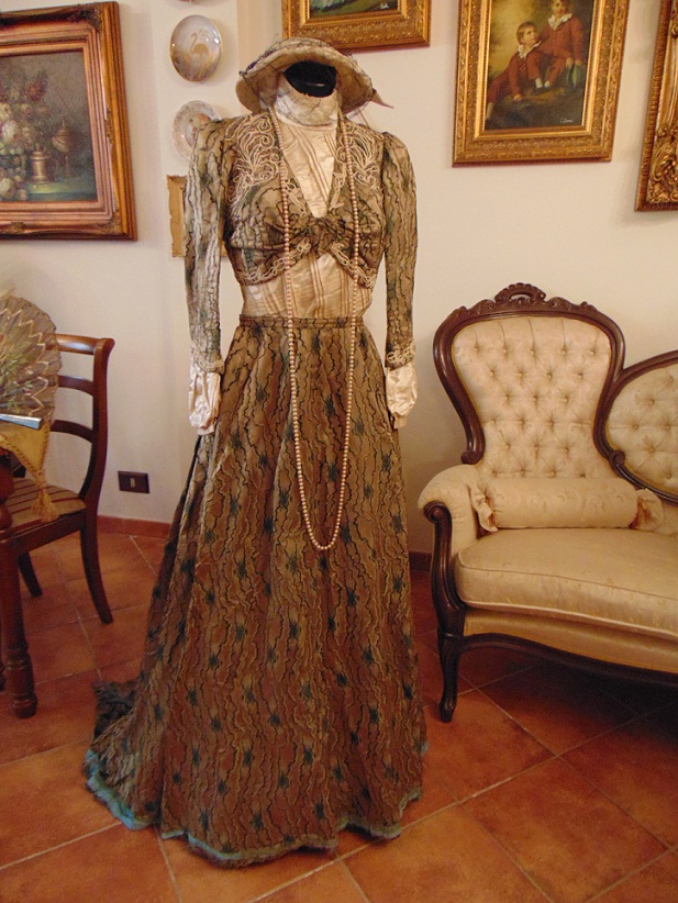 Accessori femminili che non potevano mancare ad una donna, oltre al fazzoletto e ai guanti era il ventaglio. Un elemento molto importante dell’abbigliamento femminile era il cappello: non si usciva mai di casa a capo scoperto. Nei primi anni del ‘900 i cappelli hanno dimensioni contenute, di forme diverse e molto decorati, i materiali più usati sono merletti, piume di struzzo, seta, velluto e paglia.