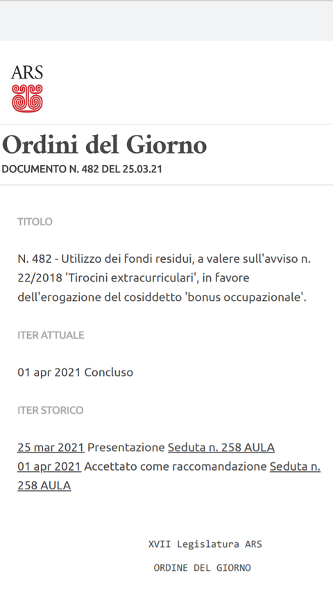 L’ordine del giorno all’Ars già e stato approvato, si attende oggetto di discussione in aula per avviare l’iter della ricollocazione dei tirocinanti dell’avviso 22