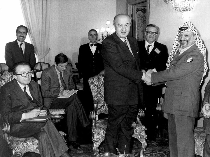 Almeno fino alla morte, ancora non chiara, del Presidente dell’Olp, Yasser Arafat. Ci tengo a ribadire che l’Italia democratica non era contro i diritti legittimi d’Israele, ma a favore del diritto, non rispettato, violato del popolo palestinese ad avere una patria e uno Stato sovrani, come sancito da diverse risoluzioni dell’Onu, in base alle quali ci devono essere due popoli e due Stati, entro i confini decisi nel 1947.