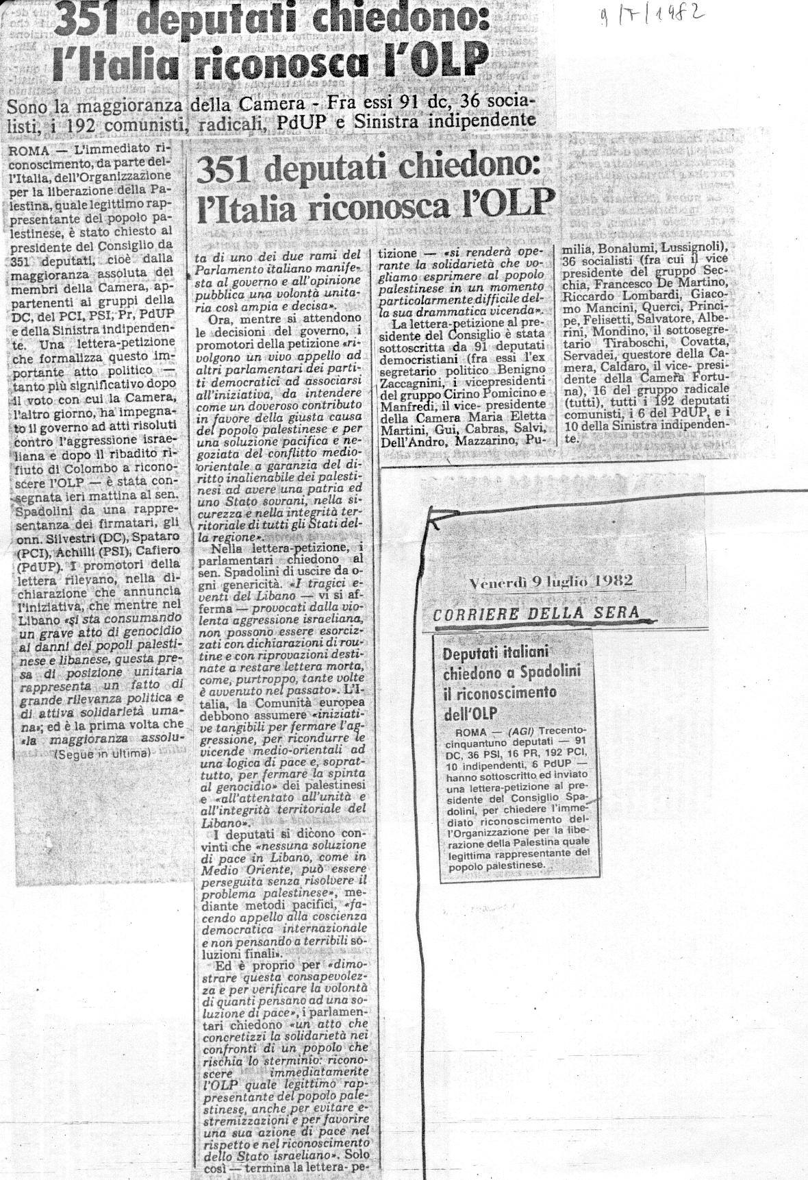Una svolta unilaterale assai in contrasto con la tradizione della nostra politica estera e con la dignità politica dell’Italia repubblicana che – come si potrà vedere dal dossier e dalle foto allegati- é stata di ampia solidarietà con la giusta causa del popolo palestinese.