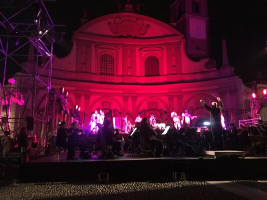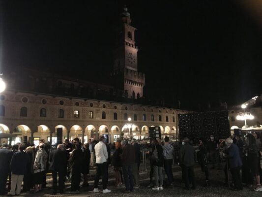 Presenti alla rappresentazione nella suggestiva cornice leonardiana della piazza illuminata da strabilianti giochi di luce, con tutt’intorno ristoranti e caffè gremiti di folla, in un’atmosfera da grande evento nazionale in uno dei più bei luoghi del Paese, oltre al sindaco di Vigevano, Andrea Ceffa, autorità, esponenti della cultura e della società civile, ed un vastissimo pubblico di appassionati musicofili.