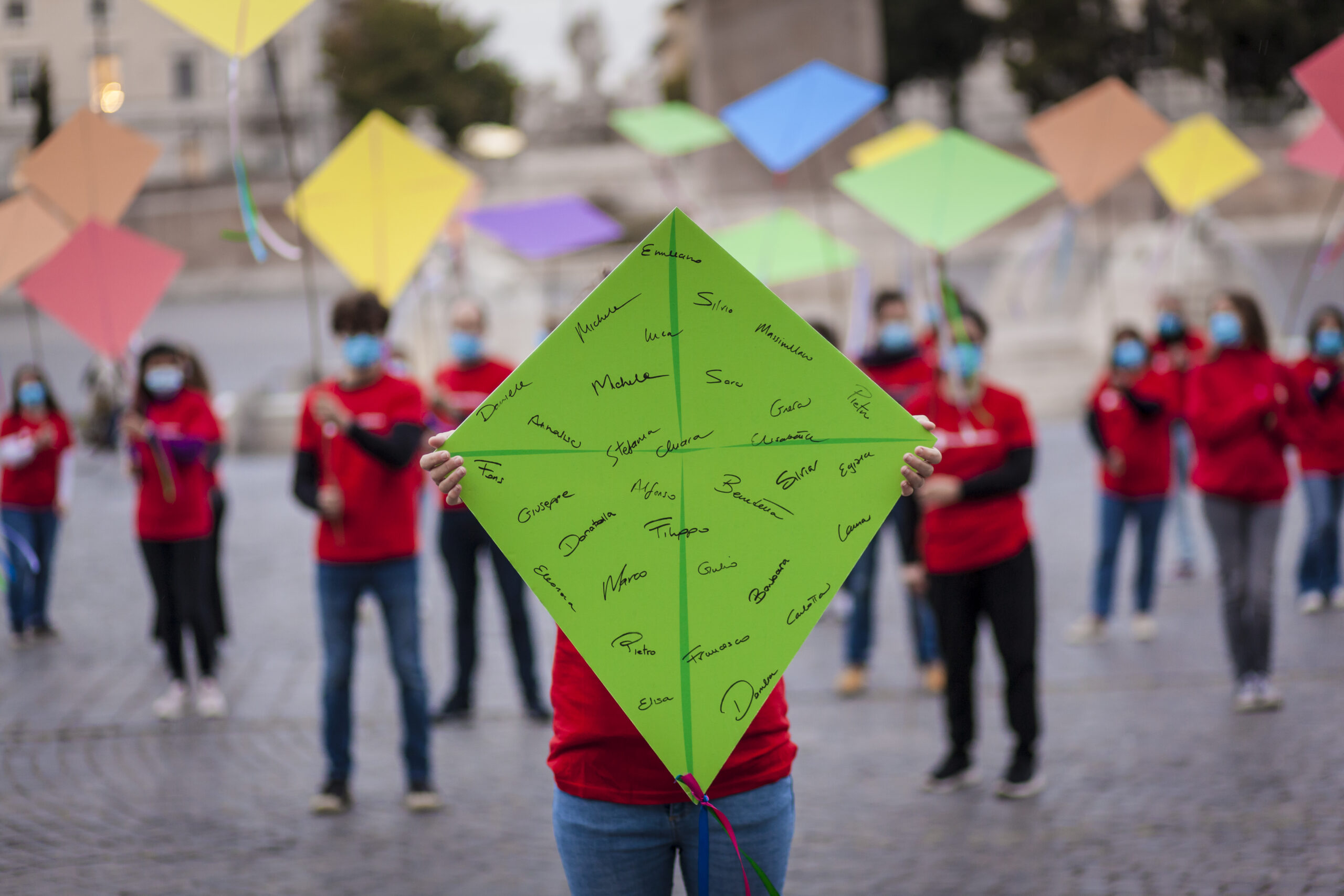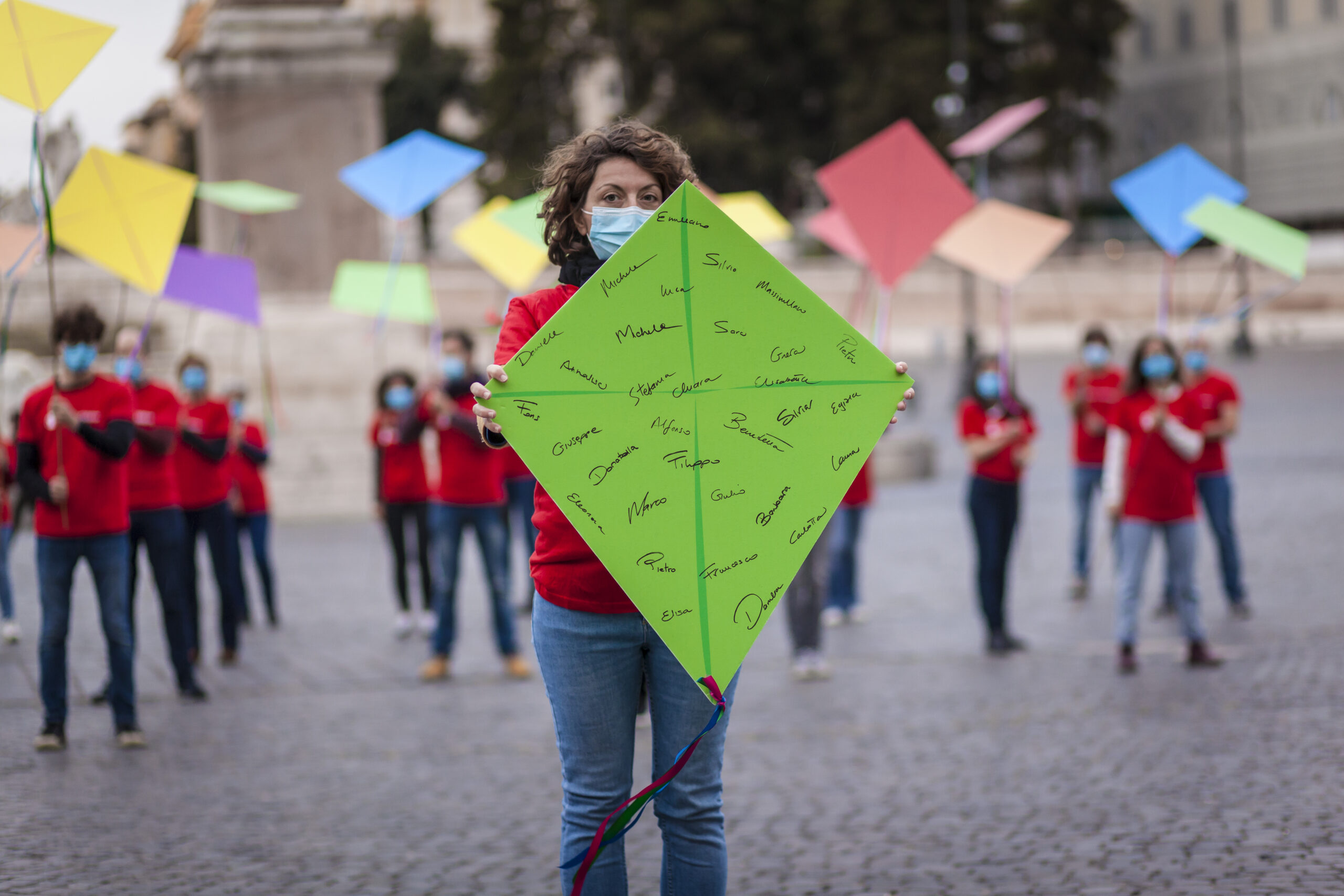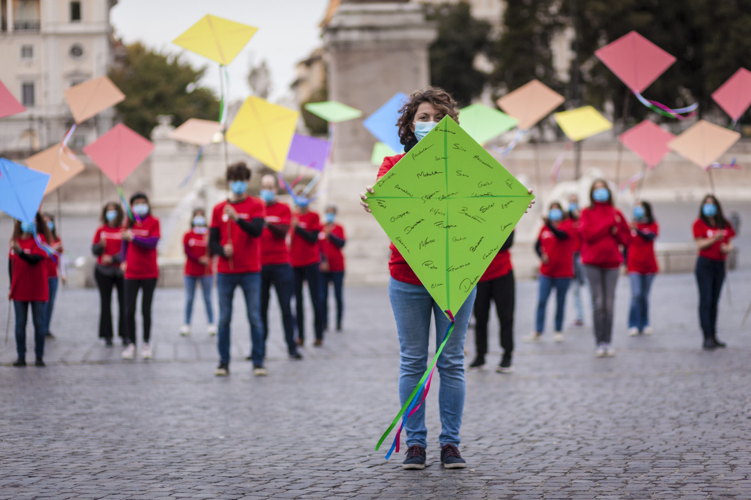 Aquiloni nel centro di Roma e consegna simbolica delle oltre 28.000 firme raccolte.