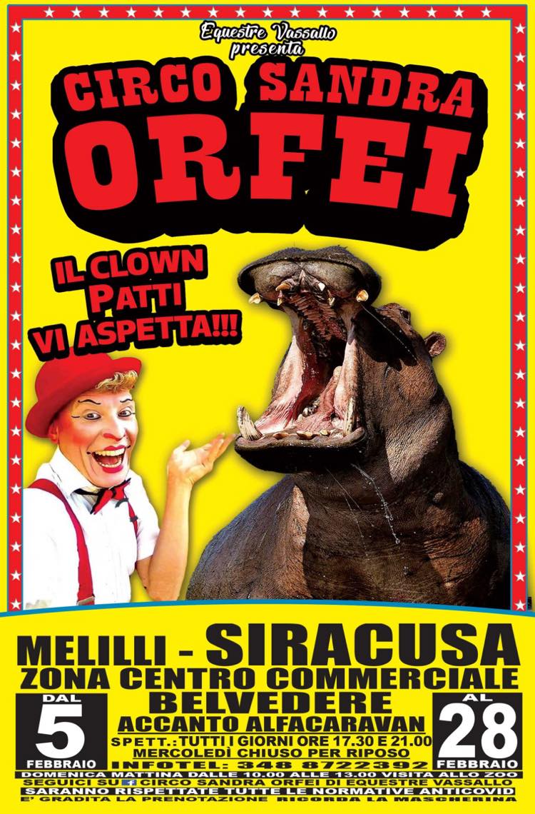 Forti emozioni e tanta allegria con le attrazioni del Circo Sandra Orfei di Equestre Vassallo, a Melilli nel siracusano dal 5 al 28 febbraio. Dall’alta cavalleria all’esotico, dalla comicità alle acrobazie, alla giocoleria, tutto in un quadro targato dal regista, Claudio Vassallo, sotto la direzione artistica di Sara Mateva. Uno spettacolo unico, capace di trasportarvi nell’atmosfera magica e surreale del circo, attraverso il connubio perfetto, tra circo tradizionale e teatro moderno.
