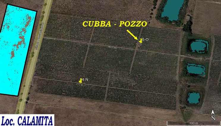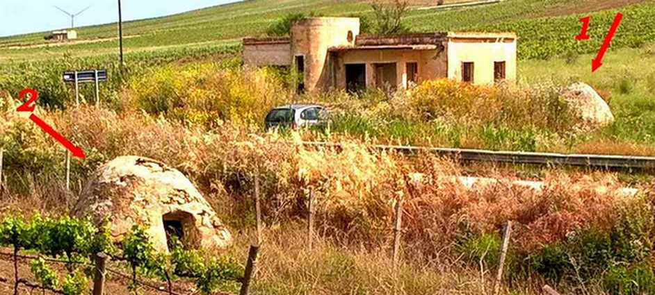 Sul lato destro, opposto all’impianto fotovoltaico, fra i vigneti, vi è una prima cubba, eretta a circa 80 metri dal bordo strada.