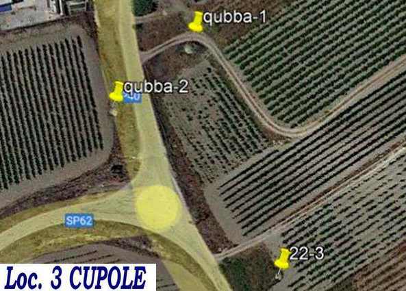 La terza cubba è ben visibile, in una area privata e recintata, posizionandosi sul ciglio della curva della provinciale 62 che dalla precedente direzione di nord-ovest svolta verso sud-ovest.