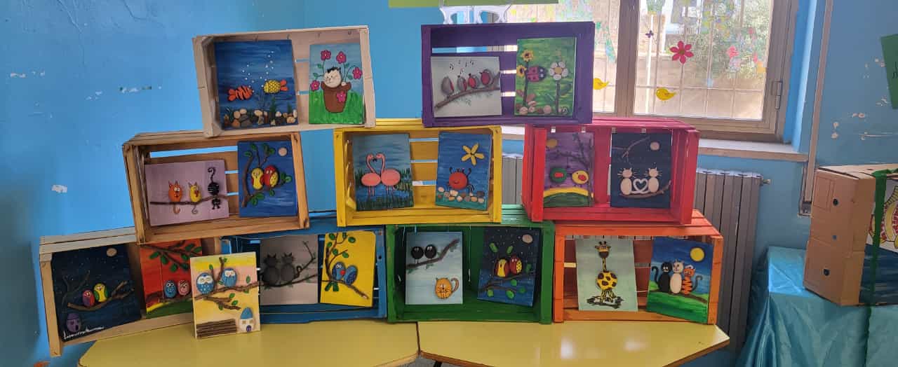 Il risultato è stato bellissimo …farfalle di carta e papaveri rossi…effetti tridimensionali, mosaici e soprattutto tanto materiale da riciclo! Creazioni con avanzi di fallegnameria, ciottoli trasformati in animaletti, tutto all’insegna del rispetto per l’ambiente.