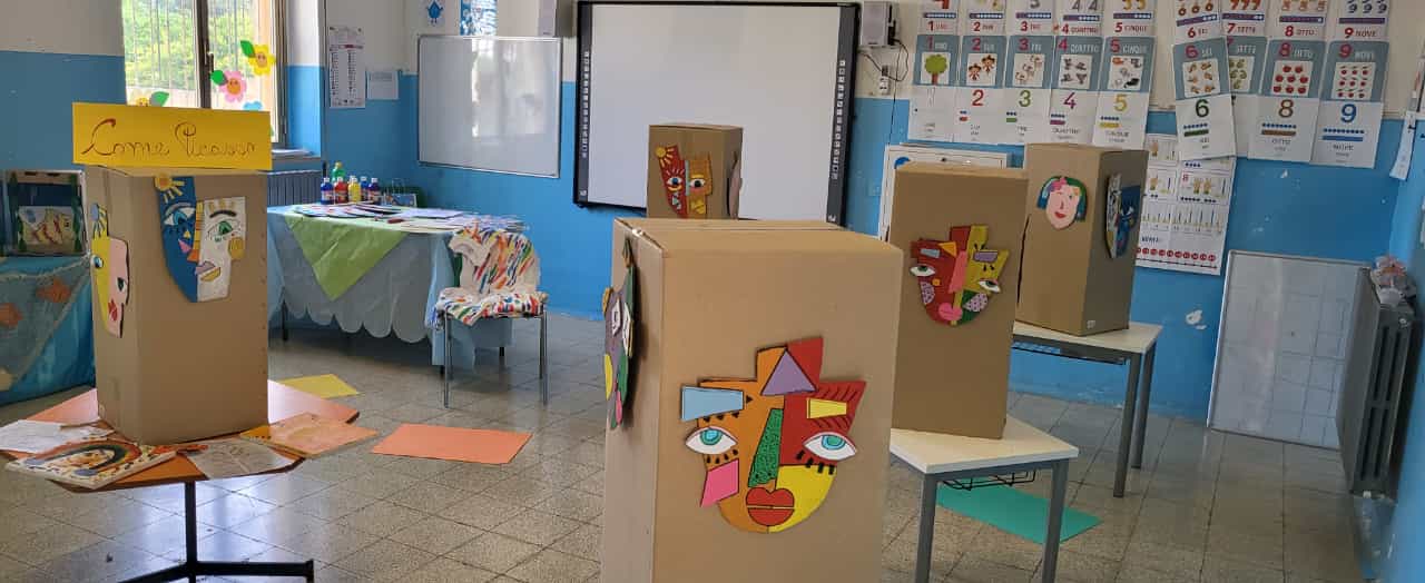Tramite l’uso della LIM è stato svolto un lavoro su Picasso utilizzando la narrazione e successivamente la sperimentazione della tecnica tipica dell’artista. I bimbi, attraverso l’espressione grafica, hanno manifestato le proprie emozioni sviluppando nello stesso tempo abilità oculo manuali.