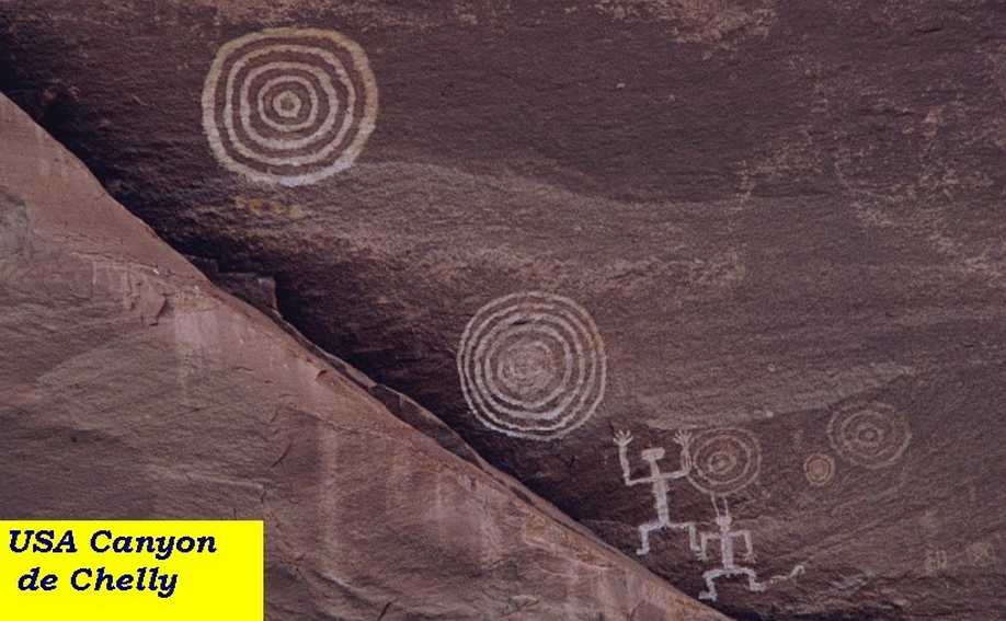E poi le emblematiche figure umane e di umanoidi , con sistemi planetari lontani, negli Stati Uniti nel Canyon Chelly.