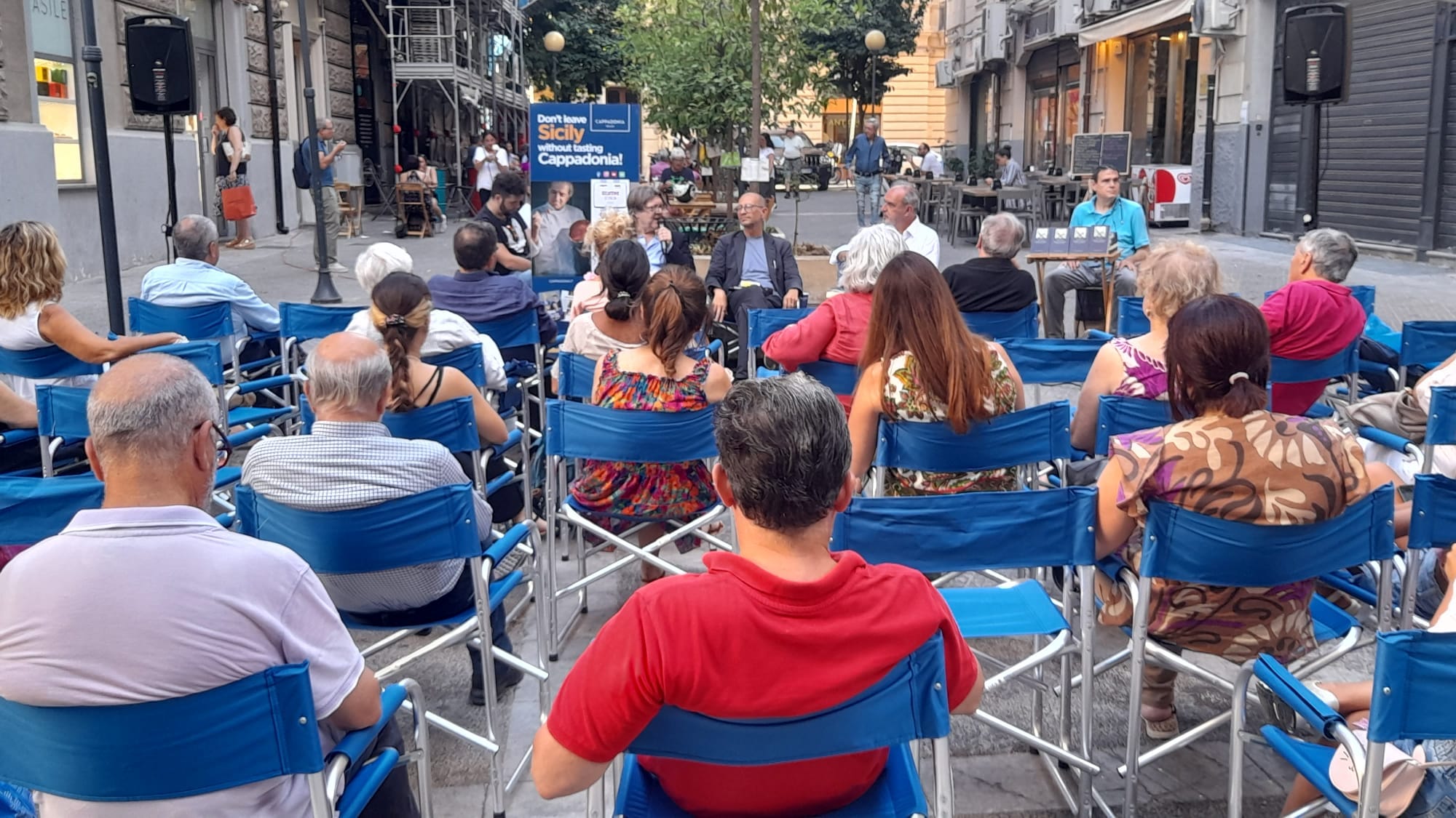 Una città, Palermo, che ha sicuramente tanto da discutere, ma anche tanto di cui essere orgogliosa. E proprio in piazzetta, quest’anno, è tornato Fabrizio Serafini, appena laureato ad Harvard, che il 1 agosto del 2019 venne ad annunciare che sarebbe partito di lì a poco alla volta di Harvard, scelto tra 45mila aspiranti, sia per il suo felice corso di studi al liceo scientifico Cannizzaro, sia perché aveva presentato un elaborato molto apprezzato sulla Sicilia. Inevitabile dire che il suo percorso di studi è stato preso ad esempio da tanti giovani che lo hanno sommerso di domande. Altra eccellenza palermitana ospite della piazzetta è stato Carlo Didonna, diplomatosi al liceo scientifico “Galilei Galilei”, il cui corso di studi è proseguito a Princeton. Oggi lavora a Wall Street e ci ha parlato di “Andare su Marte, l’impresa più grande del nostro tempo”.
