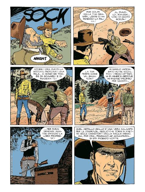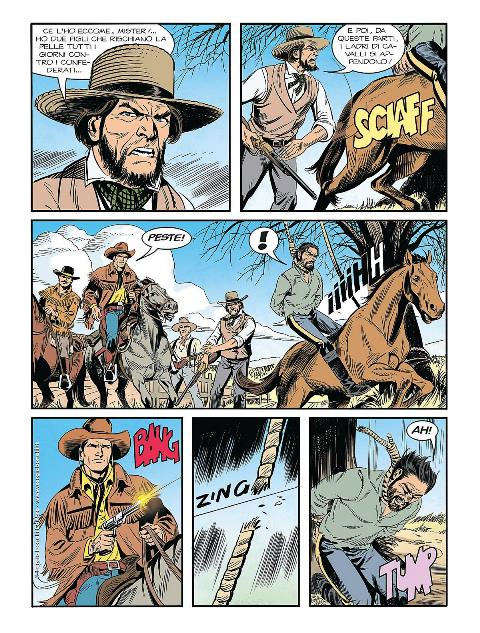 Indubbiamente, il Tex tradizionale, quello in bianco e nero, per intenderci, possiede un quid che continua a catturare l’attenzione di nostalgici e non; tuttavia è da elogiare la scelta cromatica delle varie storie: siamo lontani sia dagli eccessi “cartoonici”, sia dal minimalismo penitenziale in voga di recente. I colori rendono perfettamente l’atmosfera, scandendo le fasi del giorno e adattandosi perfettamente agli stati d’animo dei personaggi. Veramente una scelta di stile e personalità.