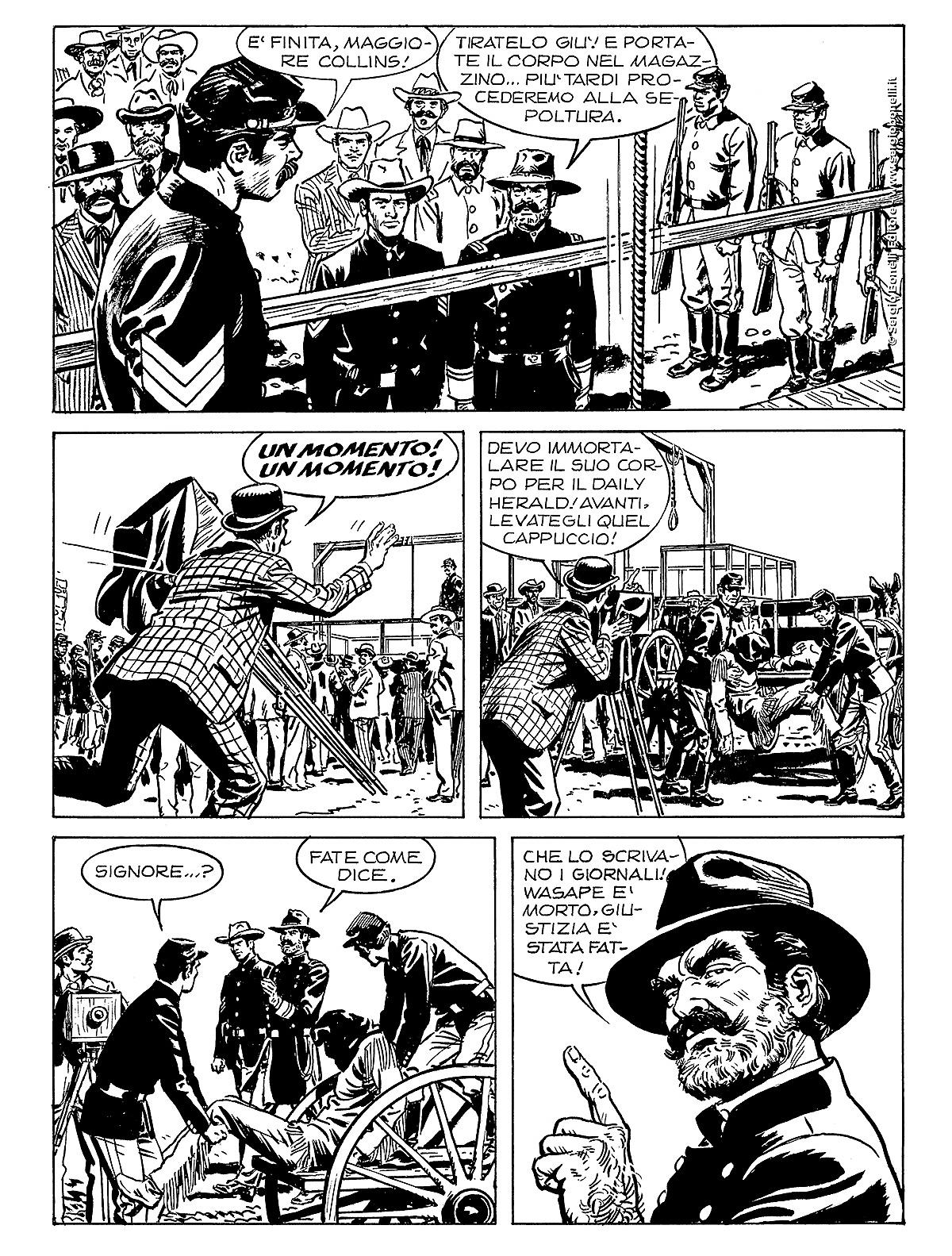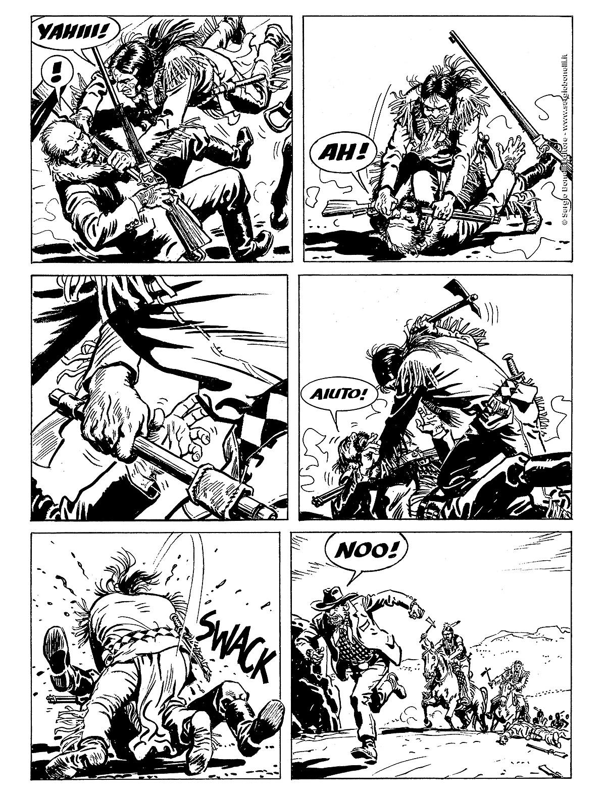 La vicenda si snoda in modo dinamico con Tex e Carson brillanti investigatori, che, passo dopo passo, ricostruiscono il puzzle di una storia basata sugli ingredienti tipici del west: avidità degli occidentali e furore dei nativi americani.