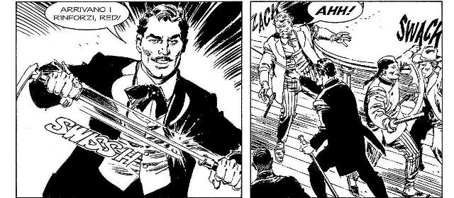 I due episodi si sviluppano e concludono nello spazio dell’albo, regalando due storie avvincenti e complete. Nella prima avventura, Tex, in Colorado, con l’aiuto di un sergente dal cuore d’oro, salva una fanciulla da nemici riconoscibili e scontati, ma anche, in un secondo tempo, da carnefici insospettabili; ancora una volta il ranger ristabilisce la verità attraverso sequenze cariche di pathos e azione. Nell’altra vicenda, con un colpo di genio di Boselli, il protagonista non è Aquila della Notte o uno dei pards, ma una vecchia conoscenza per gli amici texiani, Tom Devlin, capo della polizia di San Francisco, il quale indigesto da troppo tempo per i super cattivi della sua città diventerà bersaglio di un’autentica coalizione ai suoi danni. Il granitico poliziotto non si perderà d’animo e in modo rocambolesco riuscirà a rovesciare a suo vantaggio una situazione inizialmente disperata. Divertenti i dialoghi e la caratterizzazione dei villain di una grande città malfamata, con “amabili vecchiette” dedite a loschi traffici, tabagiste e assassine. La narrazione degli eventi è ben cadenzata e ricca di colpi di scena, grazie anche ai travestimenti e alle intuizioni di Tom e dei suoi uomini. L’atmosfera dei bassifondi è resa molto bene dai chiaroscuri, dalle scene di azione e dalla caratterizzazione realistica dei personaggi. Il finale è veramente “d’impatto”, come i lettori avranno modo di scoprire.