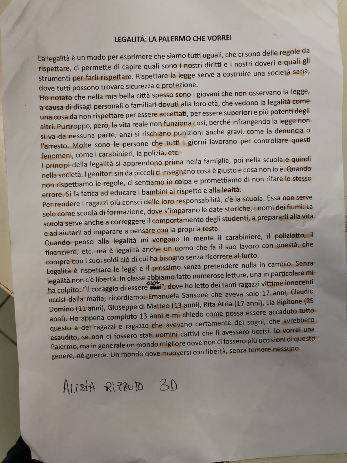 Di particolare rilievo gli scritti degli allievi, che hanno affrontato il tema della legalità ricordando e omaggiando tutti coloro che, in nome di ideali altissimi, hanno sacrificato la propria vita contrastando la mafia e la criminalità: politici, donne e uomini in divisa, sindacalisti, giornalisti, attivisti e commercianti che hanno detto no a qualsiasi forma di sopruso e intimidazione.