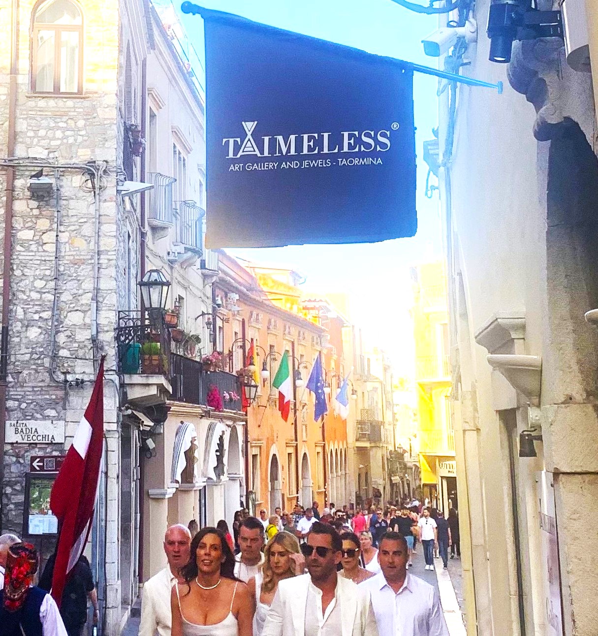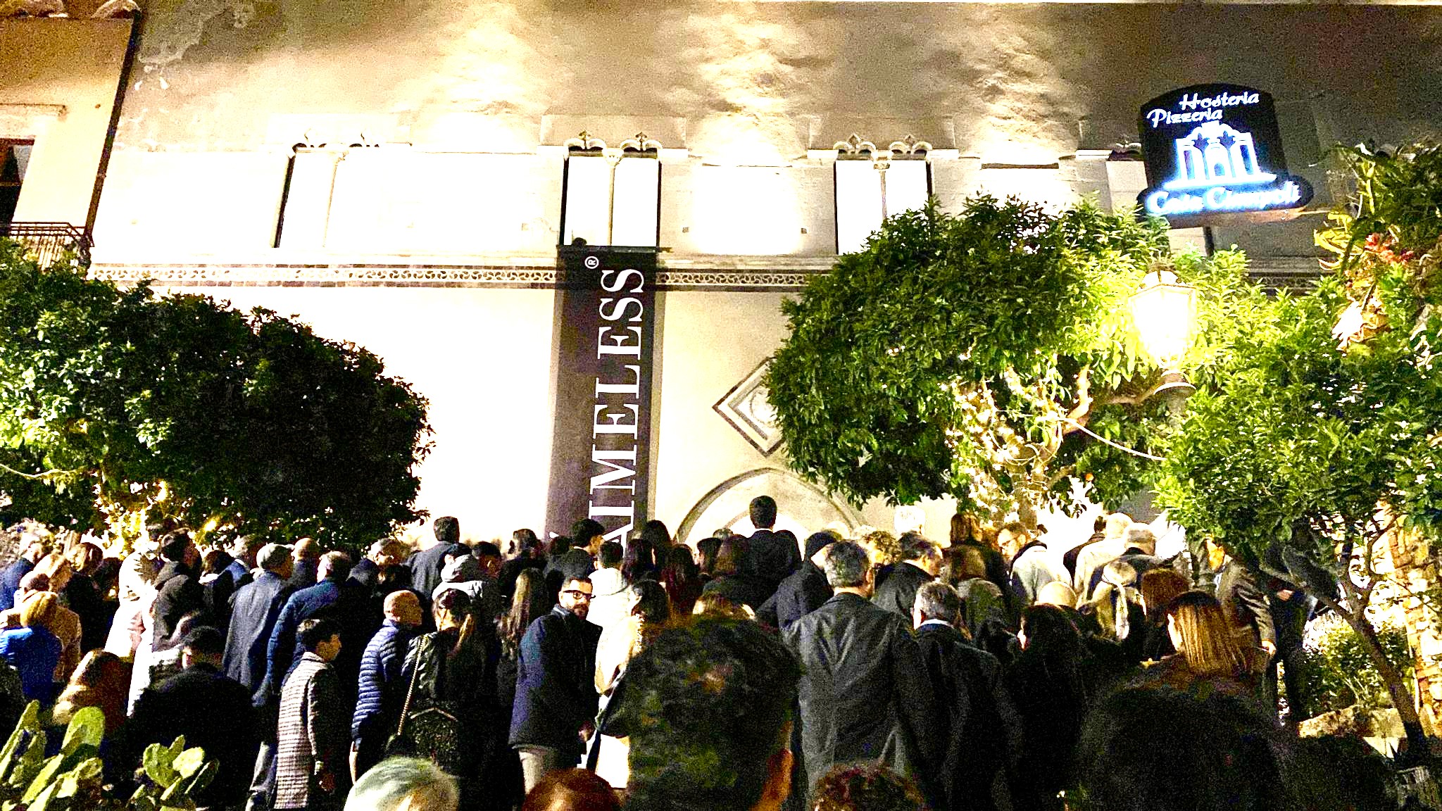 Era il 23 marzo 2024 e l’apertura di Taimeless fu preceduta da una straordinaria Serata di Gala tenutasi nella storica e prestigiosa location di Palazzo Ciampoli, dove, sin dal pomeriggio, giunsero a Taormina migliaia di invitati e nel corso dell’evento le pur ampie sale del palazzo apparvero piccole per accogliere la folla che saliva copiosa dalla Scalinata Ciampoli. Critici d’arte di spessore internazionale, amici dei tre proprietari della Galleria, figure istituzionali, artisti, designer, tutti insieme si godettero una serata all’insegna dell’Arte, unica nel suo genere, circa 4500 persone, arrivate da tutte le parti del mondo, una cosa unica e rara per una Galleria d’Arte.
