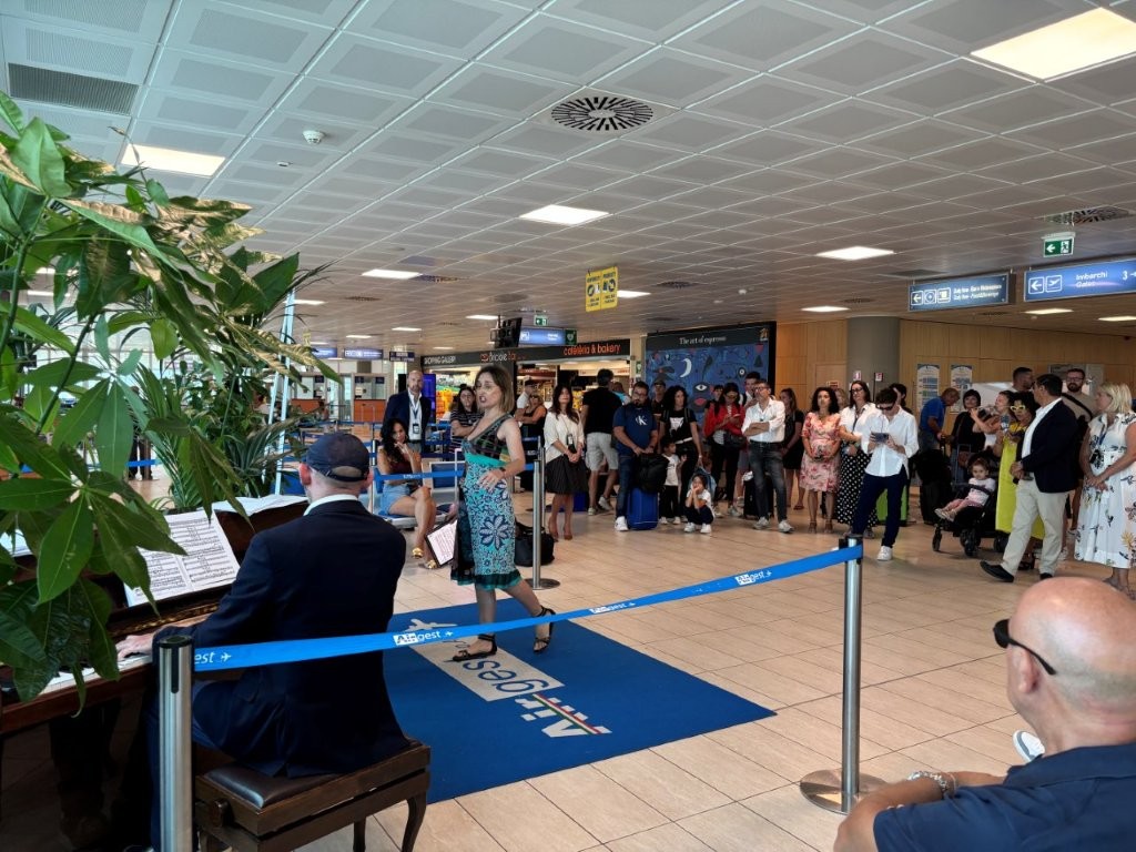 | Anche l’aeroporto Vincenzo Florio di Trapani Birgi ha un suo pianoforte all’interno del terminal. Lo strumento, uno Yamaha verticale, posizionato in area sterile, tra i gate 2 e 3, oltre ai varchi di sicurezza, è stato donato da MeMa, Mediterranean Music Association di Trapani. Per il suo “battesimo”, i passeggeri in partenza per Malta e Fiumicino sono stati sorpresi dal flash mob del pianista e direttore d’orchestra, il maestro Andrea Certa e delle cantanti liriche Maria Alessia Salaris, soprano e Lara Rotili, mezzosoprano. In programma brani di Gabriel Fauré, Georges Bizet, Giacomo Puccini, George Gershwin, Jacques Offenbach. Presenti il presidente di Airgest, Salvatore Ombra, e il sovrintendente e direttore artistico di MeMa, Giovanni De Santis. Il commento di Airgest, Salvatore Ombra “La musica unisce i popoli, eleva gli animi e fa parte di quelle attenzioni che vogliamo offrire ai nostri passeggeri. Siamo felici di entrare nel grande club degli scali che ospitano un pianoforte, e ringraziamo l’associazione MeMa per averlo reso possibile – ha commentato il presidente di Airgest, Salvatore Ombra. Questo annuncio ameno è solo l’inizio degli incontri che ci aspettano in autunno per comunicare gli importanti sviluppi sulla pianificazione infrastrutturale dell’aeroporto e dell’incremento di traffico sull’aeroporto di Trapani”. Il commento del sovrintendente di Mema, Giovanni De Santis “MeMA, Mediterranean Association avvia con entusiasmo la collaborazione con Airgest, con l’obiettivo di contribuire a promuovere l’offerta turistico-culturale del nostro territorio – commenta il sovrintendente di Mema, Giovanni De Santis –. L’aeroporto è la principale “porta d’accesso” alla provincia di Trapani e, per MeMA, presentare le proprie attività attraverso il piccolo “desk musicale” realizzato all’interno dell’aerostazione vuol essere una sorta di anticipazione dell’atmosfera che il territorio sa offrire ai propri ospiti. Oltre agli spettacoli in cartellone nell’ambito delle rassegne MeMA Summertime e MeMA Wintertime, abbiamo in animo di realizzare altre attività finalizzate a rendere più gradevole la sosta dei turisti in aeroporto prima della partenza”. |