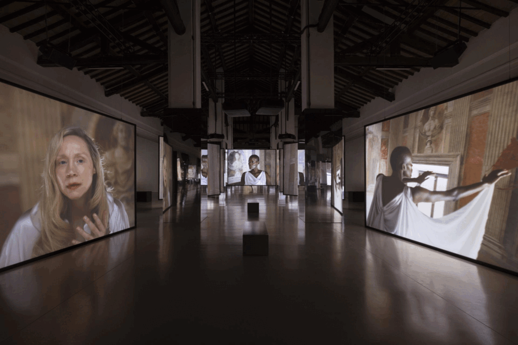 | Mantova, 03 ottobre 2025. Per celebrare il Cinquecentenario di Palazzo Te, l’artista e regista britannico Isaac Julien presenta in anteprima mondiale la sua nuova installazione filmica multischermo, All That Changes You. Metamorphosis, 2025, dal 4 ottobre 2025 al 1° febbraio 2026 a Mantova. Il progetto, curato da Lorenzo Giusti, è presentato negli spazi rinnovati delle Fruttiere di Palazzo Te che riaprono per l’occasione. Il film, girato a Palazzo Te, vede come protagoniste le attrici di fama internazionale Sheila Atim e Gwendoline Christie. Le due interpreti assumono il ruolo di entità celesti, profetiche e ultraterrene, come se prendessero vita direttamente dagli affreschi che decorano le pareti del palazzo. All That Changes You. Metamorphosis prende spunto dal capolavoro architettonico rinascimentale di Giulio Romano e usa la sontuosità del palazzo e delle sue pareti affrescate per esplorare e riconsiderare i temi della metamorfosi, della filosofia, dell’antropologia e dell’ecologia nel contesto del mondo contemporaneo. Il film si muove tra diverse ambientazioni, tra cui la straordinaria casa postmoderna Cosmic House di Charles Jencks a Londra e le rigogliose foreste del Redwood National and State Park in California, espandendo la riflessione sull’etereo, il trascendente e le nozioni di tempo. Isaac Julien sul progetto: “All That Changes You. Metamorphosis è ambientato nell’incredibile Palazzo Te, questo sogno estetico, politico e mitologico progettato e costruito da Giulio Romano tra il 1525 e il 1535. Attraverso la fantasia e l’allegoria di questa nuova installazione filmica, cerco di sovvertire l’egemonia visiva che domina i regimi tecnologici della rappresentazione. Sviluppata in collaborazione con Mark Nash, l’opera si basa su una visione condivisa per reimmaginare la poetica della creazione dell’immagine. Gli straordinari affreschi del Palazzo hanno ispirato la creazione di due dee – interpretate da Gwendoline Christie e Sheila Atim – le cui origini affondano in fonti letterarie come il lavoro filosofico e politico di Donna Haraway, Staying with the Trouble (2016), che sfida le narrazioni dominanti dell’apocalisse, e il romanzo di Naomi Mitchison, Memoirs of a Spacewoman (1962), in cui una scienziata e viaggiatrice temporale racconta le sue esperienze di ricerca, comunicazione e innamoramento con forme di vita extraterrestri. Il personaggio di Sheila Atim è basato sul romanzo di narrativa speculativa del 1993 Parable of the Sower di Octavia E. Butler, un’opera profetica ambientata in una Terra post-apocalittica colpita dal cambiamento climatico e dalle disuguaglianze sociali. La sceneggiatura finale è stata sviluppata in collaborazione con Mark Nash e Vladimir Seput, unendo prospettive intellettuali ed estetiche diverse. Entrambe le protagoniste viaggiano nel tempo attraverso una serie di spazi architettonici che funzionano come metafore visive e personaggi, delineando differenti temporalità: da Palazzo Te costruito nel XVI secolo con i notevoli affreschi di Giulio Romano, passando per la postmodernista Cosmic House di Charles Jencks a Londra del XX secolo, fino a una futuristica “astronave” di vetro, progettata da Richard Found e situata tra le campagne inglesi, e al padiglione per la Kramlich Collection di media art creato da Herzog & de Meuron. Questi ambienti possiedono ciascuno un’identità propria. Nell’attraversare differenti temporalità, le protagoniste assumono identità differenti, mentre cercano di andare oltre una visione del mondo antropocentrica e discutono su come condividere il pianeta con la natura e altri esseri, offrendo spazio alla rappresentazione di prospettive non umane. L’installazione filmica a dieci schermi costruisce un repertorio d’immagini autonomo e oppositivo, generando una propria poetica. Attraverso la ricomposizione delle scene in una coreografia visiva architettonica, il linguaggio delle immagini interrompe il telos narrativo che plasma la percezione. Il film offre una grammatica visiva alternativa che restituisce alla natura un ruolo attivo, là dove memoria, poesia e immaginazione convergono in un atto di resistenza contro la distruzione del pianeta, riconfigurando visivamente il presente e il futuro, e creando ciò che Judith Butler definisce un “immaginario alternativo.” L’opera è prodotta da Palazzo Te in collaborazione con Rosenkranz Foundation, Canyon, Linda Pace Foundation, Jessica Silverman, Jack Weinbaum Family Foundation, Mellon Fund, e l’University of California, Santa Cruz. Il progetto rientra nelle attività del Cinquecentenario di Palazzo Te, promosso dal Comune di Mantova, prodotto e organizzato da Palazzo Te con il contributo di Regione Lombardia, Fondazione Banca Agricola Mantovana, Fondazione Comunità Mantovana e Victoria Miro, con la sponsorizzazione di Poste Italiane e BPER Banca, e con la sponsorizzazione tecnica di Coldiretti e PlantaRegina, con la media partnership di Gruppo Editoriale Athesis, con il supporto di Amici di Palazzo Te e dei Musei Mantovani, in sinergia con Mantova città d’arte e di cultura. |