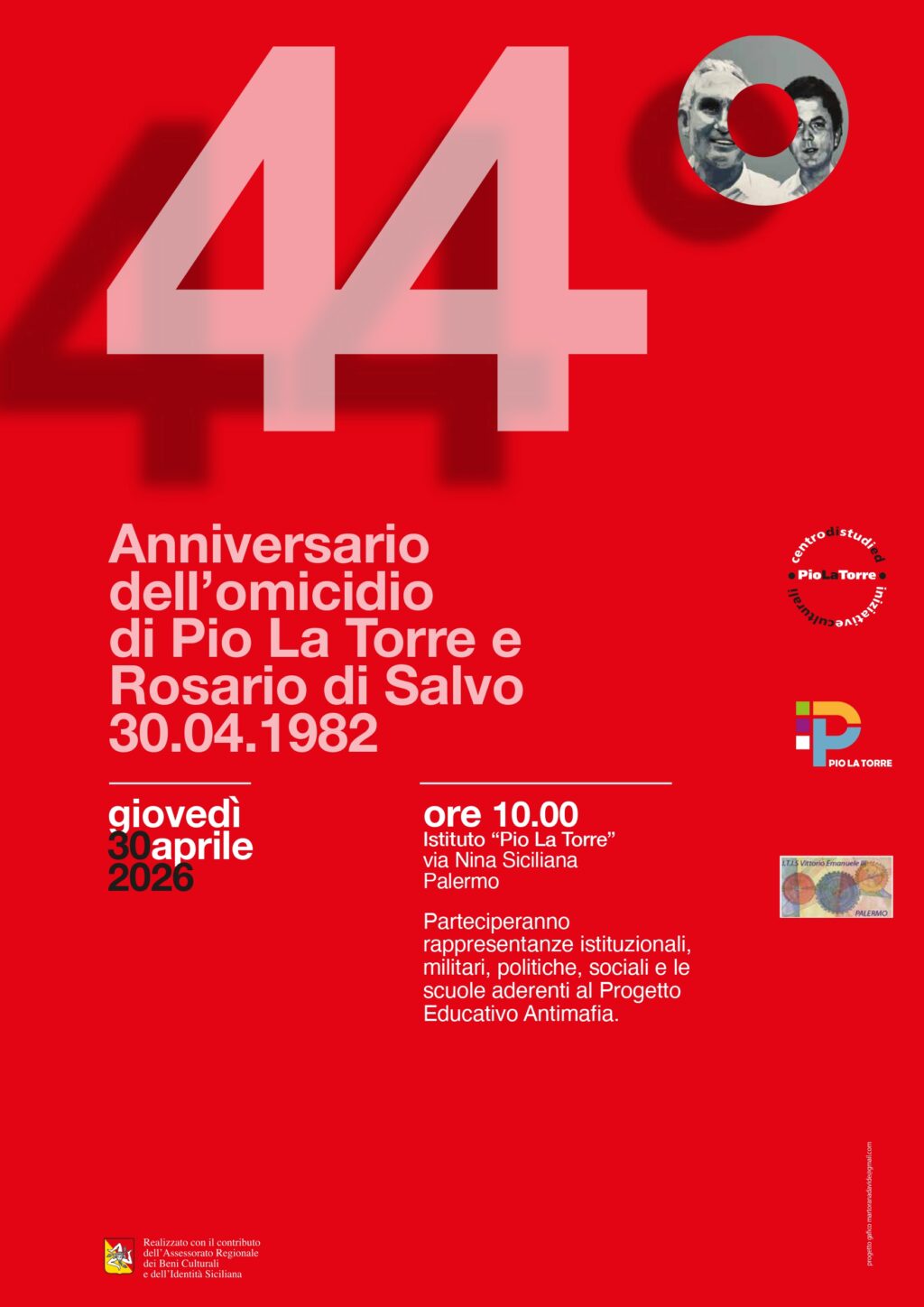 Tutto pronto per celebrare il 44° anniversario dell’uccisione politico-mafiosa di Pio La Torre e Rosario Di Salvo. L’appuntamento sarà dalle 10 alle 12.30 di giovedì 30 aprile all’Istituto “Pio La Torre” di via Nina Siciliana, a Palermo, dove si alterneranno rappresentanze istituzionali, militari, politiche, sociali e le scuole aderenti al Progetto Educativo Antimafia. A promuovere la giornata di memoria è il Centro Studi Pio la Torre che, durante la manifestazione verrà annunciato il vincitore del concorso “Angelo Meli“, dedicato al direttore dalla rivista “A Sud’Europa”, edita dallo stesso Centro Pio La Torre, prematuramente scomparso nella notte tra giovedì 28 e venerdì 29 settembre 2023. Sarà contestualmente premiata la scuola che vincerà il, “Trofeo della Legalità”, manifestazione sportiva organizzata dall’Istituto “Pio La Torre”, che vedrà disputare l’incontro finale proprio la stessa mattina del 30 aprile tra i licei De Cosmi, Finocchiaro Aprile, Vittorio Emanuele III, Danilo Dolci e Pio La Torre.